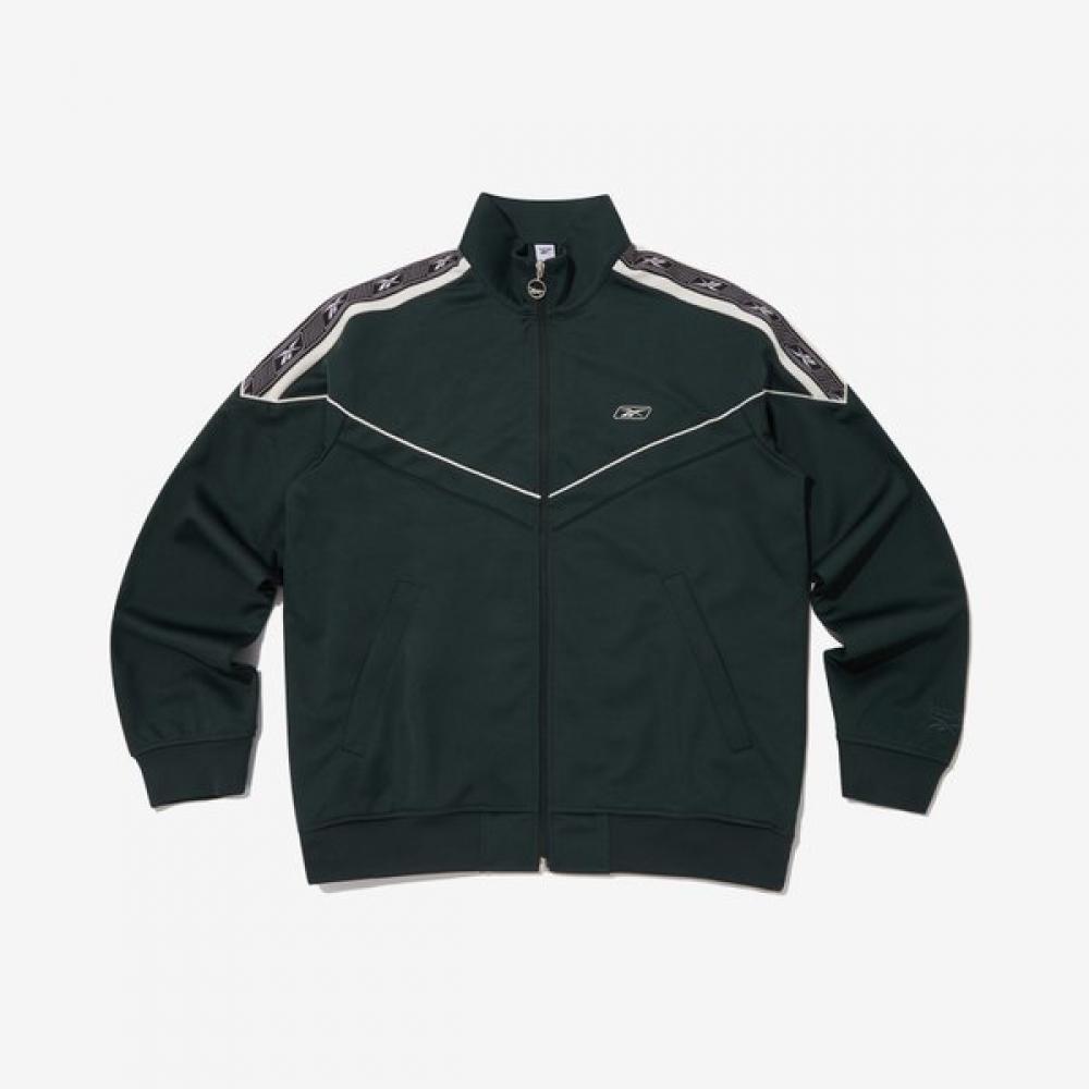 The Gender-Neutral Premier Track Top - Green (REJU5FZ20E3) is a modern reinterpretation of the 2000s heritage mood, crafted from soft jersey material to provide comfort and a lively sports vibe. The logo tape detail that extends from the shoulders adds depth to the silhouette, while the seasonal graphics on the back and front logo embroidery emphasize a retro feel. The ribbed finish on the sleeves and hem ensures a stable fit and enhances mobility, while the piping cut line across the chest and sleeves presents a structural design.
