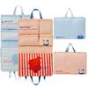 1. A 7-in-1 travel organizer bag in a tote style, made of durable and stylish Oxford cloth. Its large capacity allows for organized storage of clothing, underwear, cloth bags, snacks, cosmetics, and personal items, making it ideal for travel or business trips.