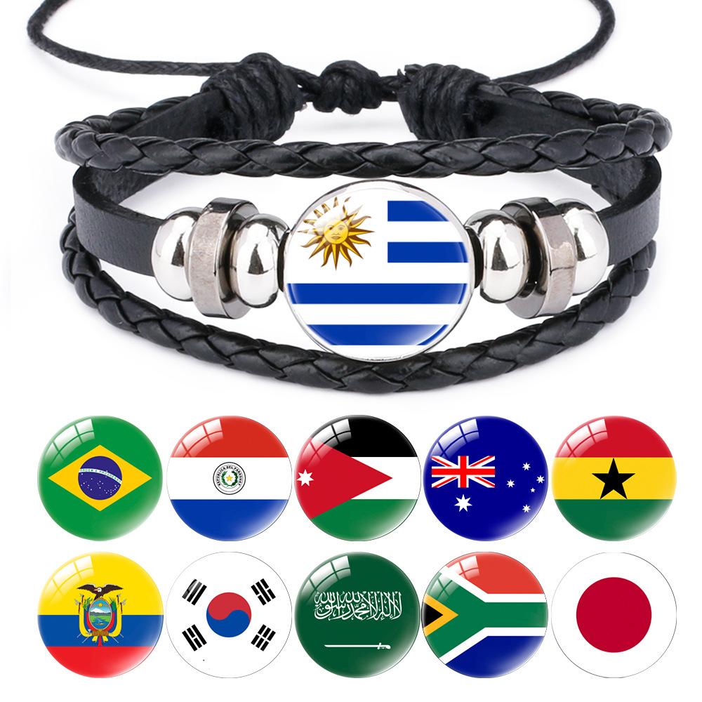 World Cup Leather Bracelet National Flag Soccer Match Souvenir Adjustable Cowhide Woven Bracelet for Men Women,Sports Fan Accessories