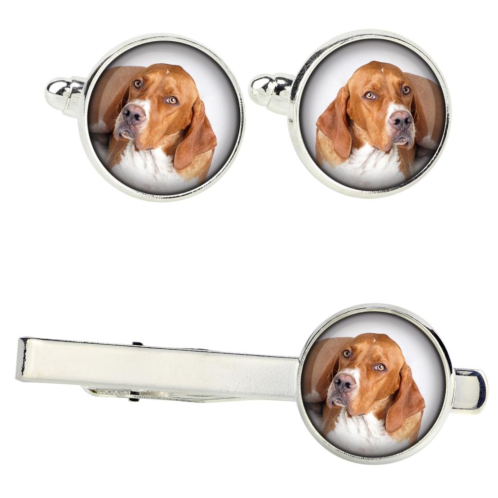 Handmade jewelry made with passion and for enthusiasts :)A unique set of men's jewelry with photos of four-legged friends. It was handmade with passion and attention to every detail.Cufflinks and tie clip with original photos embedded under convex glass and set in a hypoallergenic silver base (nickel-free).Cufflinks - photo diameter 14mm.Tie clip with a length of 5.4cm, with a photo diameter of 16mm.The photos are of the highest quality, with vivid colors, printed on high-quality photographic paper.The set is packed in an elegant gift box.FREE personalization: If you dream of unique jewelry with your own pet, or with any other themed photo - it is now possible to place a personalized order with your own photo or graphic :)Note! The jewelry is not waterproof. It is recommended to avoid getting wet in the rain and soaking the sleeves :)Colors may slightly differ from the displayed pattern, due to differences in displaying photos on monitors.