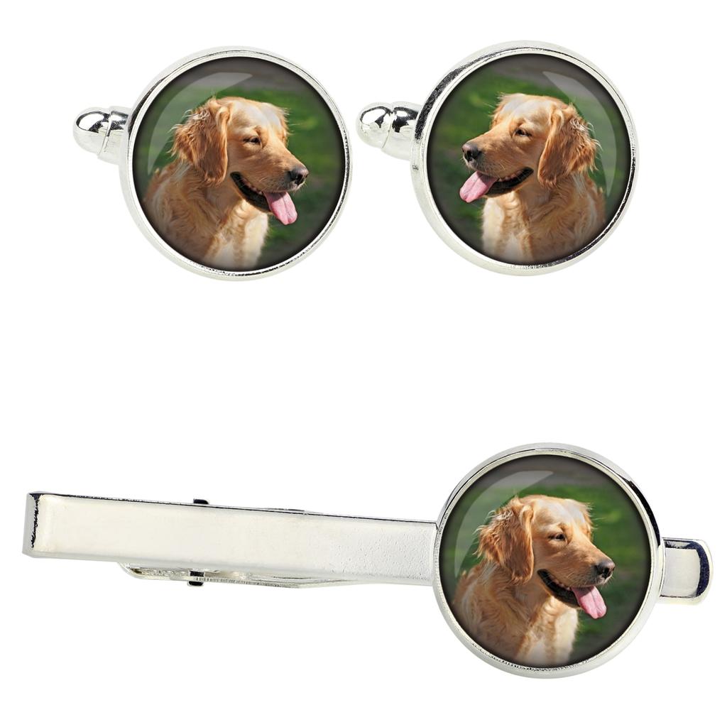 Handmade jewelry made with passion and for enthusiasts :)A unique set of men's jewelry with photos of four-legged friends. It was handmade with passion and attention to every detail.Cufflinks and tie clip with original photos embedded under convex glass and set in a hypoallergenic silver base (nickel-free).Cufflinks - photo diameter 14mm.Tie clip with a length of 5.4cm, with a photo diameter of 16mm.The photos are of the highest quality, with vivid colors, printed on high-quality photographic paper.The set is packed in an elegant gift box.FREE personalization: If you dream of unique jewelry with your own pet, or with any other themed photo - it is now possible to place a personalized order with your own photo or graphic :)Note! The jewelry is not waterproof. It is recommended to avoid getting wet in the rain and soaking the sleeves :)Colors may slightly differ from the displayed pattern, due to differences in displaying photos on monitors.