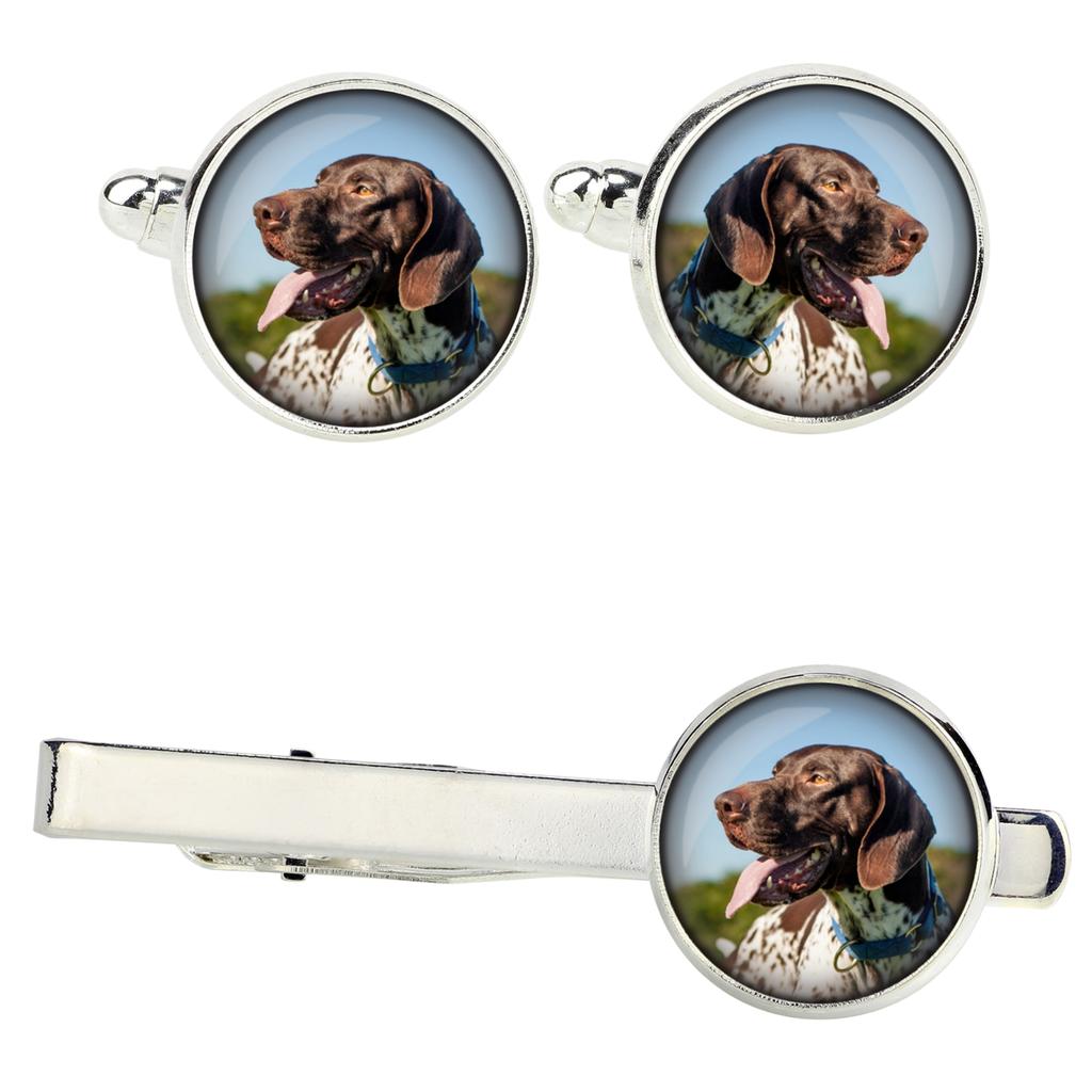 Handmade jewelry made with passion and for enthusiasts :)A unique set of men's jewelry with photos of four-legged friends. It was handmade with passion and attention to every detail.Cufflinks and tie clip with original photos embedded under convex glass and set in a hypoallergenic silver base (nickel-free).Cufflinks - photo diameter 14mm.Tie clip with a length of 5.4cm, with a photo diameter of 16mm.The photos are of the highest quality, with vivid colors, printed on high-quality photographic paper.The set is packed in an elegant gift box.FREE personalization: If you dream of unique jewelry with your own pet, or with any other themed photo - it is now possible to place a personalized order with your own photo or graphic :)Note! The jewelry is not waterproof. It is recommended to avoid getting wet in the rain and soaking the sleeves :)Colors may slightly differ from the displayed pattern, due to differences in displaying photos on monitors.