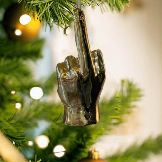 Versatile Decor Piece: Whether you prefer traditional or eclectic decor styles, our Gold Middle Finger Christmas Ornament is a versatile addition that complements any setting. Add a touch of irreverent charm to your festive decorations this season.