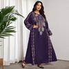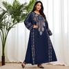 This elegant dress features a Middle Eastern ethnic style, showcasing a captivating plaid pattern in a rich navy blue tone. Crafted from high-quality polyester fibers, the dress ensures comfort and durability. The design boasts a modest round neckline and long sleeves, making it suitable for a variety of occasions. Ideal for plus-size figures, this dress combines style and comfort in a truly sophisticated manner.