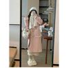 Women's Korean Pink Lambswool Tweed Coat: Winter 2025, Horn Button, Loose Fit