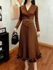 European & American Pleated Lux Plus Size Beaded Long Dress with Suit Collar