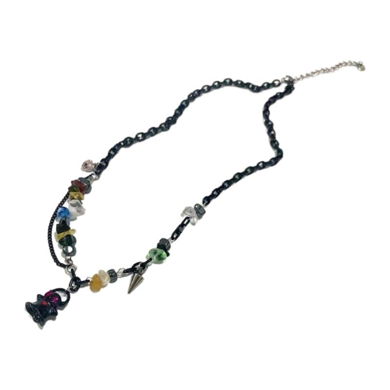 Adjustable Collarbone Chain Colorful Specter Pendant Necklace Stylish Beaded Bracelet Perfect for Fashion Enthusiasts