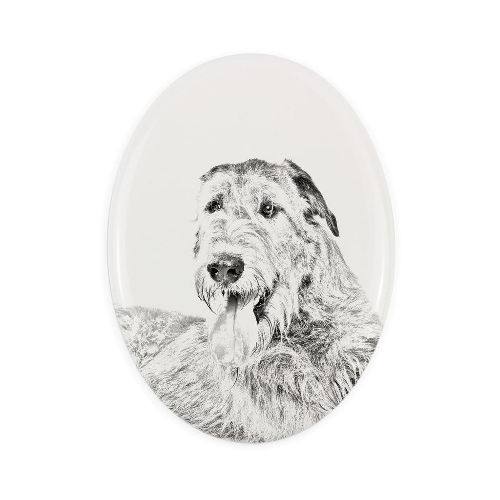 Irish Wolfhound - commemorative plaque with a photo of a dog, tombstone with a print, personalized oval plaque from the Art-Dog brand