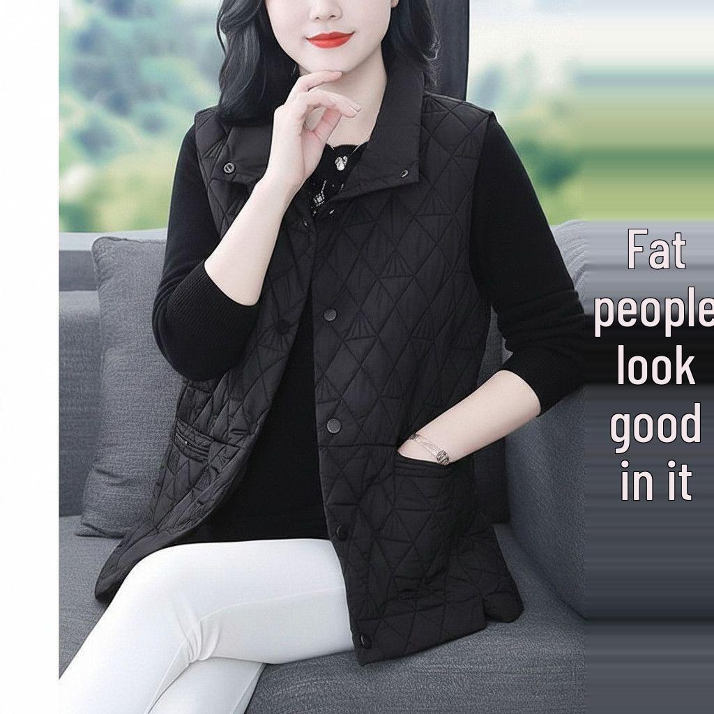 Discover the ultimate in comfort and style with this plus-size women's high-end cotton padded vest. Designed with a sportive flair, this jacket promises both warmth and a slimming appearance. It features a stand neckline, providing added protection against the elements while ensuring a chic look. The vest is thoughtfully crafted from durable polyester material, with a soft sintepon filling that offers excellent insulation. Ideal for cooler weather, this thick and flesh-covering piece is perfect for both casual outings and more active, sporty occasions. Stay cozy and confident with this essential wardrobe addition.