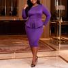 This elegant plus-size bodycon dress is designed to enhance and flatter your figure, making it a perfect choice for banquets and commuting alike. The dress features a sophisticated solid pattern with exquisite bead decoration, adding a touch of glamour to your look. Made from high-quality polyester, it ensures comfort while maintaining a sleek appearance. The long sleeves feature stylish ruffles, providing an additional element of elegance to the overall design.