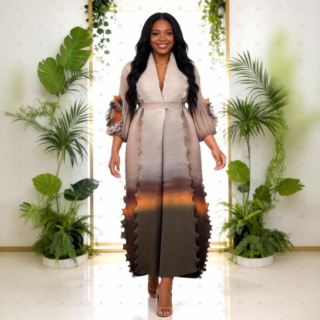 Miyake Women's Tie-Waist Gradient Ruffled Long Coat and Skirt Set - Ideal for Spring and Autumn