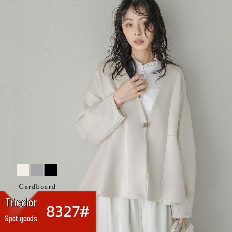 V-neck Ruffle Waist-Cinching Slim Short Jacket for Women - Spring/Autumn 2025 Collection