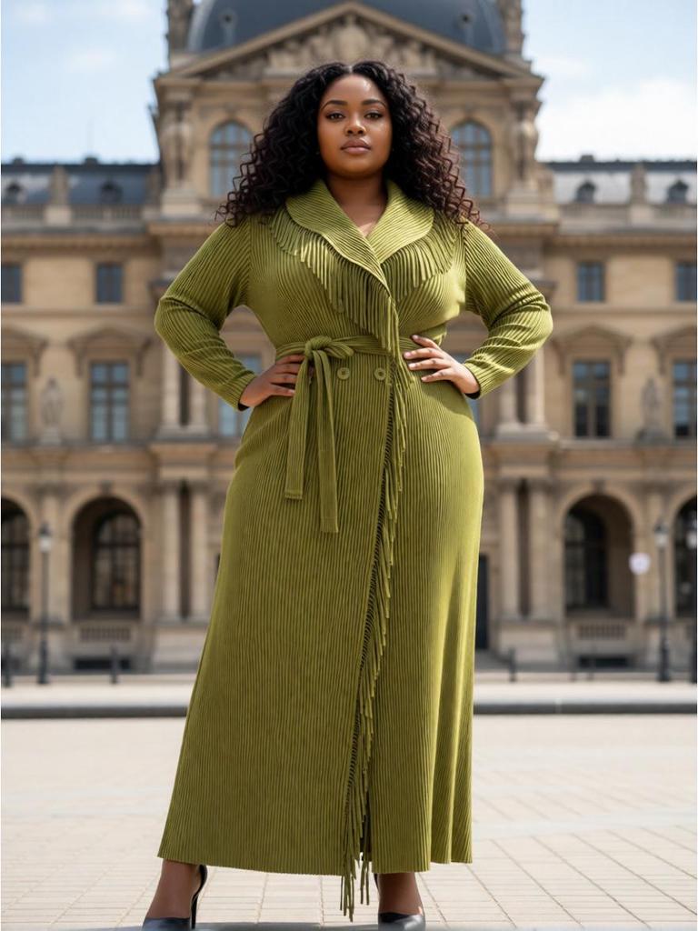 Elegant Plus Size Tassel Jacket - Miyake Pleats, European African Style Women's Fashion