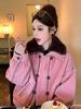 Women's American-Style Pink Denim Fur Collar Jacket - Short, Thick, and Beautiful Winter Coat.