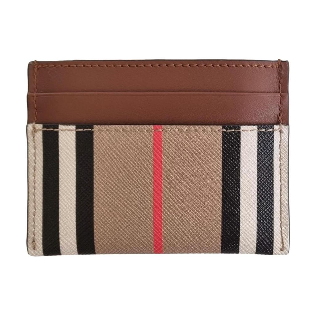Burberry Classic Stripe Design Leather And Cotton Card Holder Men Accessories Light-Brown 80730701