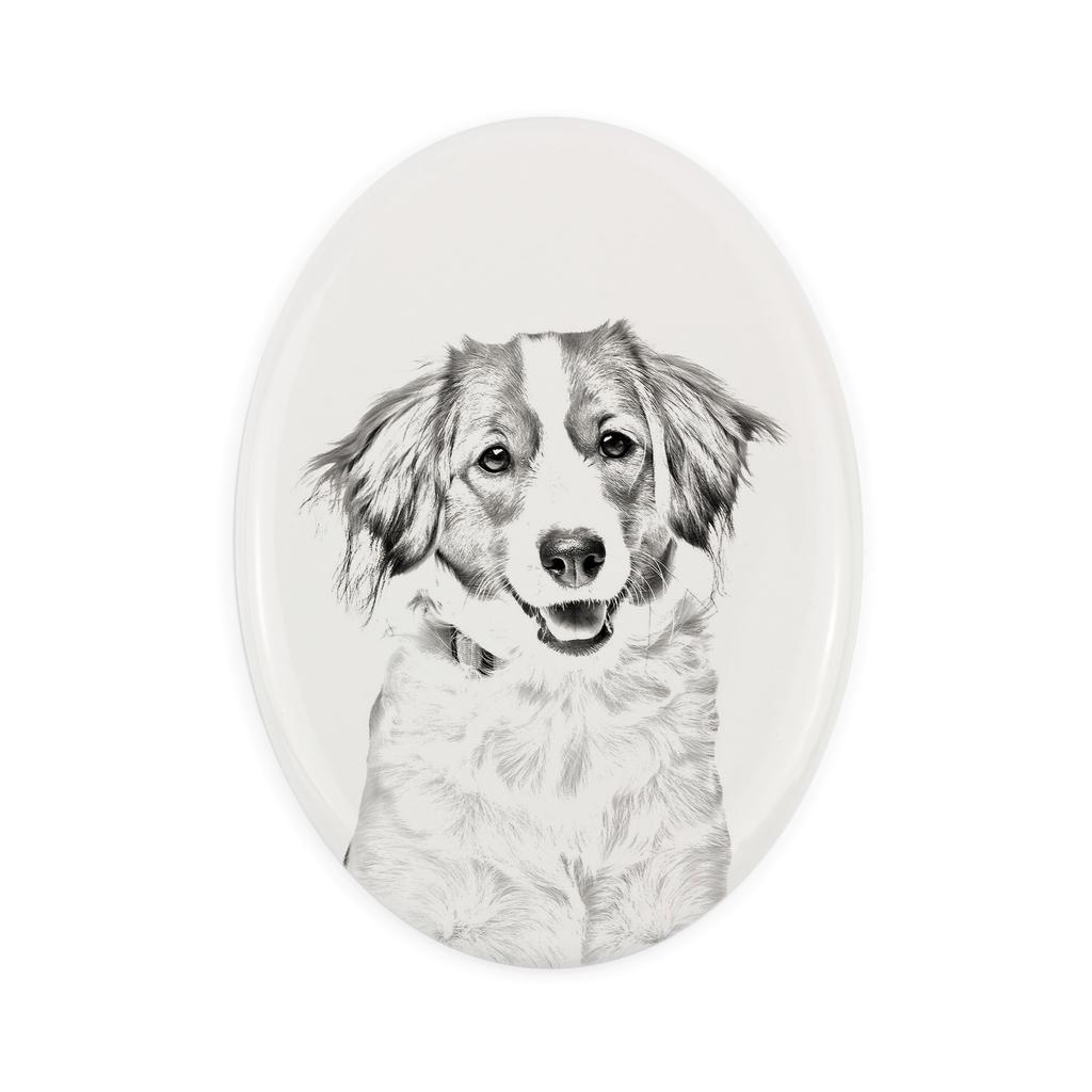 Kooikerhondje - commemorative plaque with a photo of a dog, tombstone with a print, personalized oval plaque from the Art-Dog brand