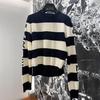 Women's Celebrity Style Color Block Striped Letter Knit Sweater - Round Neck, Long Sleeve, Versatile Pullover for Autumn/Winter