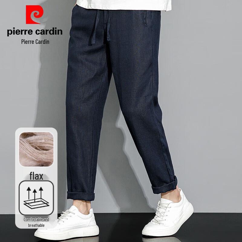 Pierre Cardin Men's Lightweight Linen Chinese Style Straight-Leg Pants