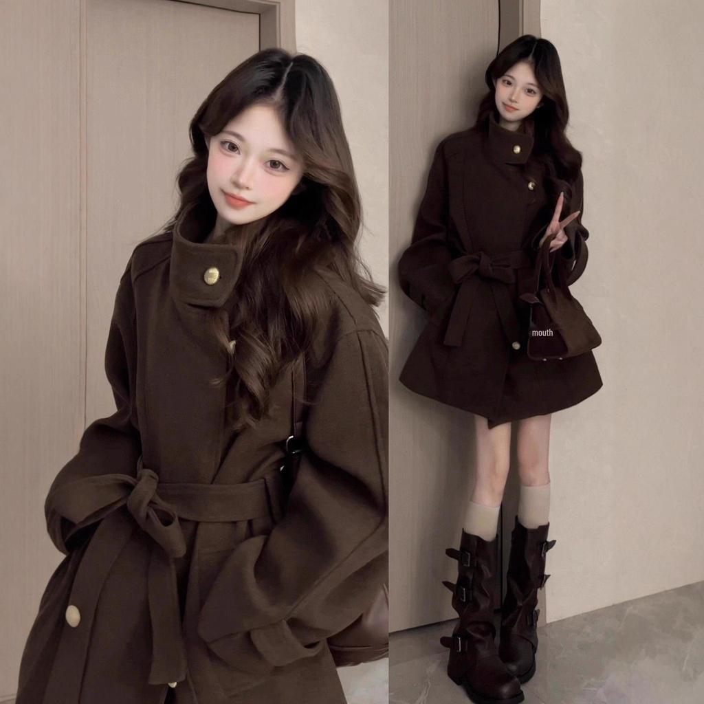 Women's Elegant Woolen Coat - Korean Style, High-End Design for Autumn/Winter 2026