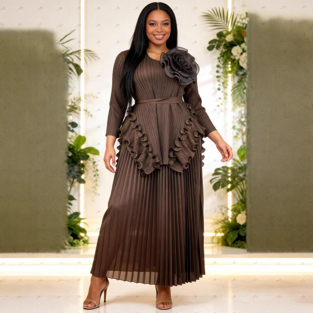 Miyake Plus Size African-Inspired Pleated Ruffle Irregular Two-Piece Set - Women's Fashion
