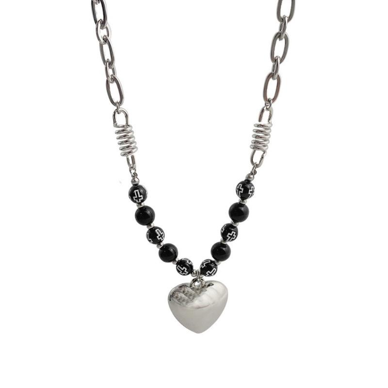 Fashion Sweet Cool Heart Pendant Necklace Choker Neck Chain Elegant Clavicle Chain Handmade Beaded Necklace Y2K Jewelry