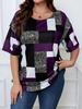 Experience comfort and style with this Plus Size Women's Printed Round Neck Casual Top T-Shirt. Featuring a trendy color block pattern, this top is designed with a flattering round neckline and convenient half sleeves. Made from high-quality artificial silk material with a milk silk feel, it offers a luxurious and soft touch against the skin, making it perfect for everyday casual wear.
