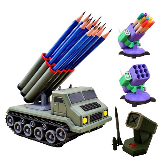 Roket Topu Kulesi Kalemlik 3D Baskılı Güdümlü Füzeler Kurşun Kalem Saklama Kutusu Konteyner Tutucu Ev Ofis Masaüstü Dekorasyonu