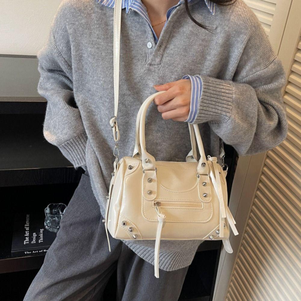 PU Leather Retro Underarm Bag Vintage Pillow Handbag Portable Boston Bag Travel