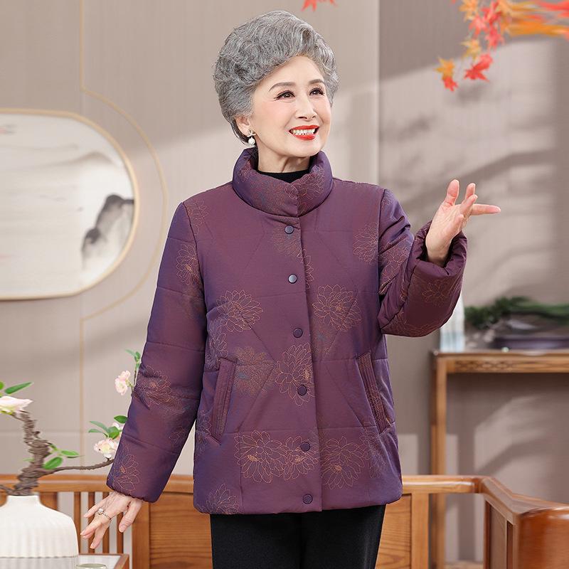 This cozy winter jacket is perfect for older women seeking warmth and comfort during the colder months. Crafted from high-quality polyester, this jacket features a thick cotton-padded design that ensures maximum insulation. Its short style provides ease of movement, making it ideal for everyday wear. The jacket is lined with soft polyester fur, adding an extra layer of warmth and a touch of elegance. Perfect for grandmas, moms, and older ladies, this jacket combines practicality with style for a charming winter look.