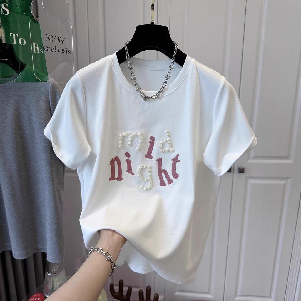 Experience ultimate comfort and style with this extra-large cotton T-shirt, perfect for casual wear. Featuring intricate bead decorations, the T-shirt offers a unique and trendy flair. With its round neckline and loose, short sleeves, it is designed to provide a relaxed fit while keeping you looking chic and fashionable. Crafted from high-quality cotton, this T-shirt ensures breathability and softness for all-day comfort. Ideal for those who love to combine elegance with simplicity.