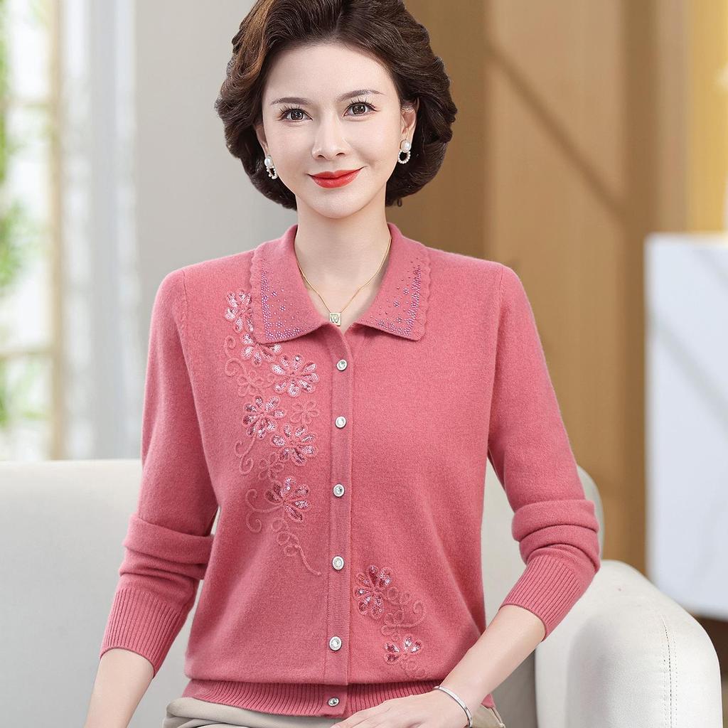 Indulge in the elegance and warmth of this luxurious cardigan, crafted from 100% pure sheep wool. Designed with attention to detail, it features exquisite embroidery that adds a touch of sophistication. Perfect for mothers and grandmothers, this mid-aged and elderly women’s lapel sweater offers both comfort and style. Its natural wool material ensures softness and warmth, making it an ideal choice for cooler days. The classic lapel design delivers a timeless appeal, making this cardigan a versatile addition to any wardrobe.