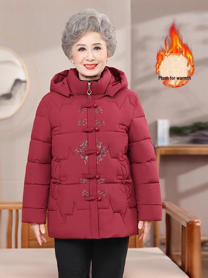 Stay warm and stylish this winter with this fleece-lined cotton coat, specifically designed with elderly women in mind. The new Chinese style offers a modern twist, making it an ideal choice for mothers and grandmothers. Crafted from durable polyester materials, this jacket is insulated with Sintepon filling for added warmth. It features a tailored neckline for a sleek look, while the functional pockets add a practical touch. Whether you're heading out for a casual stroll or running errands, this jacket ensures comfort and elegance throughout the cold season.