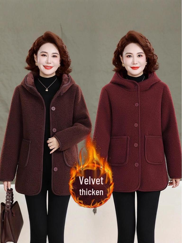 This elegant winter jacket is designed specifically for middle-aged and elderly women who value both style and warmth. Crafted from luxurious velvet cotton, this thickened outerwear is padded with fleece to provide exceptional warmth during cold months. Its solid pattern offers a timeless look that pairs well with various outfits. Perfect for ensuring comfort and style throughout the winter season.
