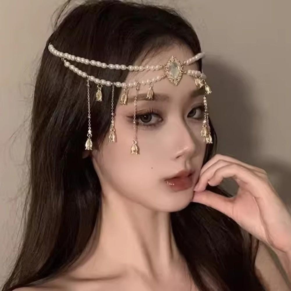 Double Layer Forehead Chain Vintage Luxury Ethnic Headwear Elegant Crystal Necklace Women Jewelry