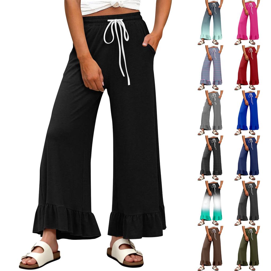 Women's Wide-Leg Casual Pants With Drawstring, Stretch, High Waist, Ruffled Hem, Wide Legs, Belted, And Pockets Description 1.Material: The women's pants is made of high quality material, and suitable for everyday wear, made of soft fabric, polyester, light and comfortable, wardrobe pants , easy to pants up or take off, comfortable pants , you can wear one all day. 2. Occasion: This casual pants is perfect for everyday, beach, outing, party, work, casual wear. This women's casual loose pants is available in a variety of to suit your personal . 3. Is the best choice for gift giving 4. Wash with cold water, the size will not change greatly, if you have any questions when choosing, welcome to consult 5. Different monitors will have a little color difference, please don't mind Product information: Gender:Women Material:Ppolyester Item Type:Casual pants Fit Type:Straight Thickness:Standard :Casual Package include:1PC Women's Pants