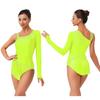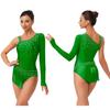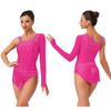 Ladies Glittery Rhinestone Bodysuit Asymmetric Shoulder Tassel Fringe Leotard Gymnastics Figure Skating Wear