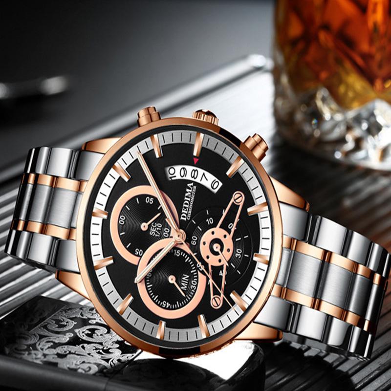 DEDIMA New Quartz Watch Brand Luxury Waterproof Chronograph Luminous Casual Men's Clock Three Eyes 6-pin Multi-function Watches