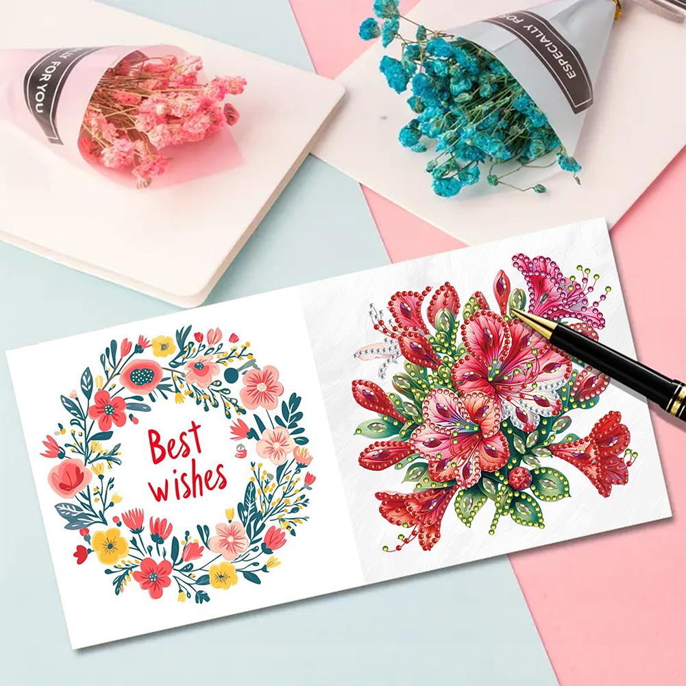 6pcs Diamond Painting Greeting Cards Handmade 5D Rhinestone Embroidery Arts Cards Kits Arts Crafts for Birthday Thanksgiving Day