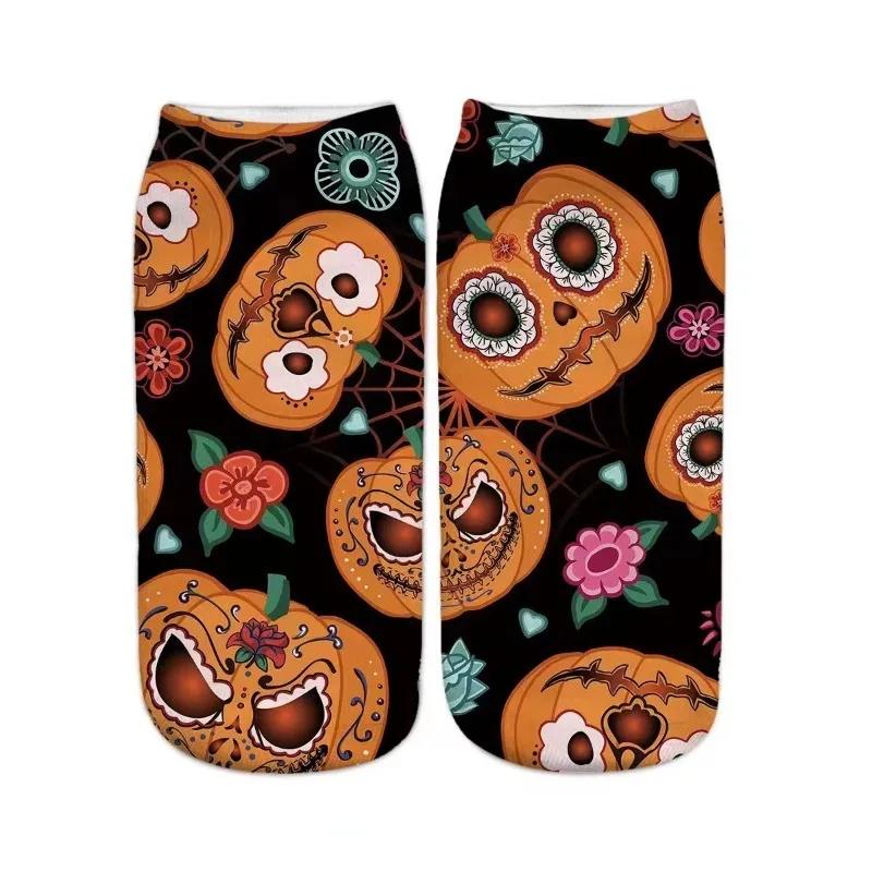 Funny 3D Printing Halloween Pumpkin Castle Short Ankle Socks Horror Theme Role Playing Couple Socks Halloween Gift