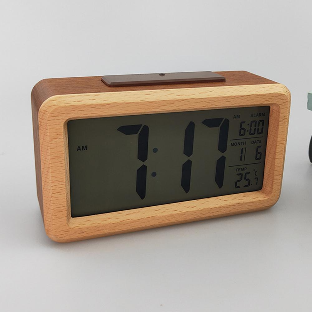 Natural Wood Grain Light-Sensitive Clock Digital Alarm Clock Dimmable Backlight Large Screen Minimalist Design