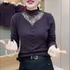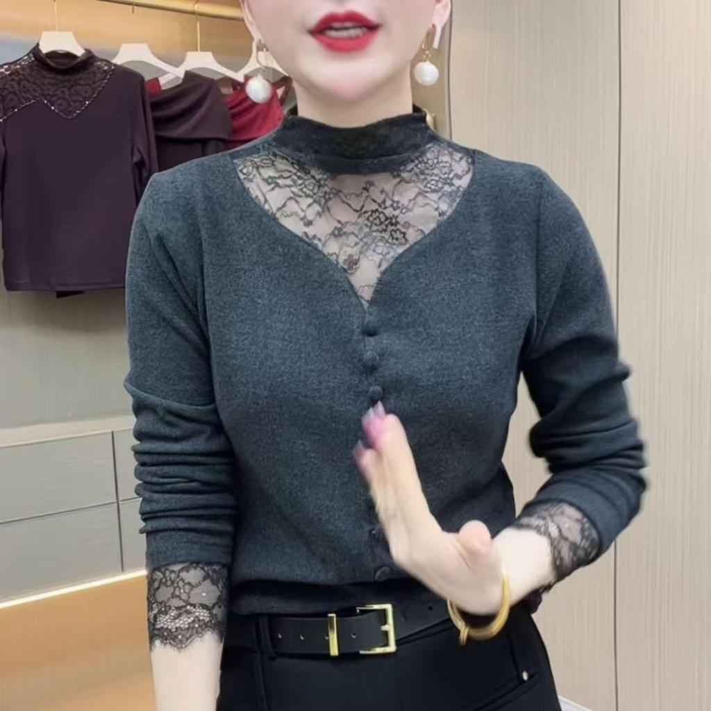 Elevate your style with this elegant top, designed for a flattering fit and sophisticated look. Featuring a high neck and long sleeves, the top combines chic lace detailing with a mesh overlay for a touch of allure. Crafted from durable PVC material, it offers a modern silhouette while expertly concealing the tummy area, providing both comfort and confidence. Ideal for various occasions, this versatile piece seamlessly blends fashion and function.