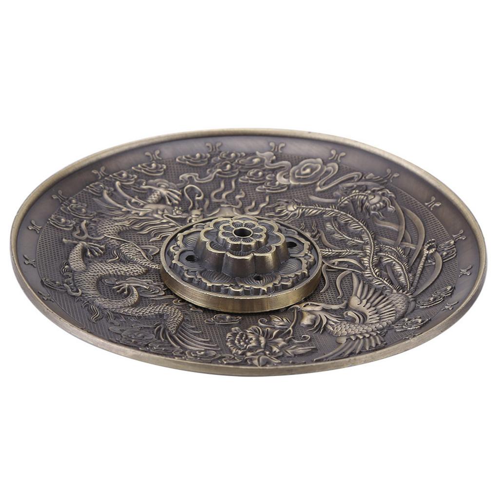 Zinc Alloy Incense Stick Holder Dragon Pattern Plate for Bedroom Temple Bronze