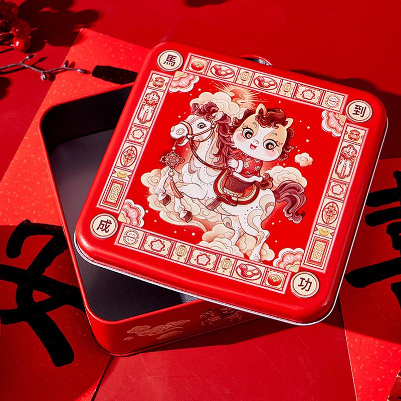 Chinese Year Tinplate Candy Tin Can Metal Box Cartoon Year Of The Horse Panda Printed Candy Cookie Tea Storage Gift Case