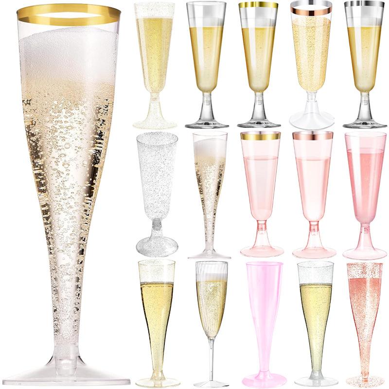 50pcs Disposable Plastic Champagne Glasses Cocktail High Footed Glasses Crystal Glasses Imitation Glass Wedding Party Supplies