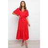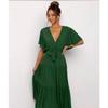 New v-neck commuter solid color short-sleeved waist dress, bohemian dress