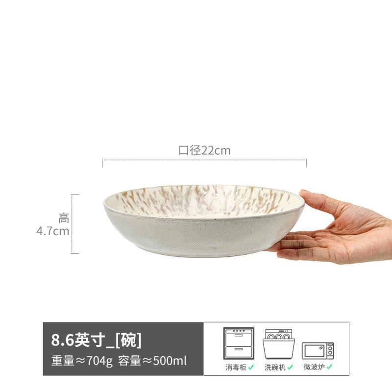 Retro Texture Ceramic Plate, Western Food Steak Plate, Japanese Household Round Plate, Tableware, Vegetable Plate, Pasta Plate