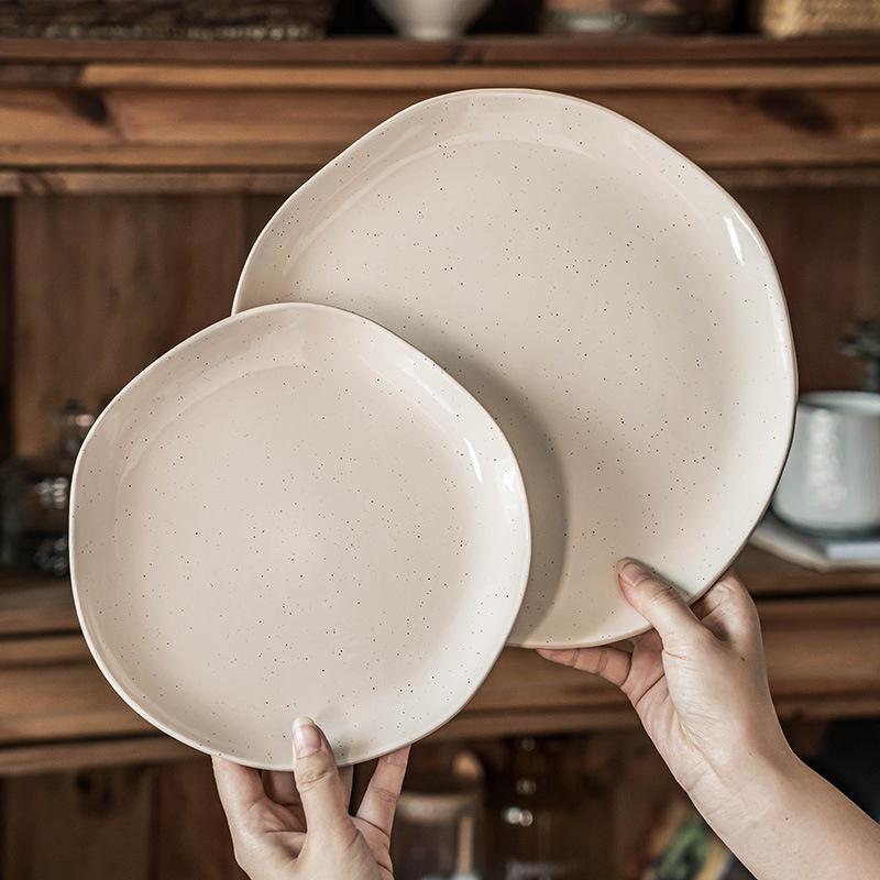 Special-Shaped Plate, Sesame Glaze Plate, Japanese Ceramic Plate, Large Plate, Design Sense, Dinner Plate, Household Vegetable Plate, Salad Plate.