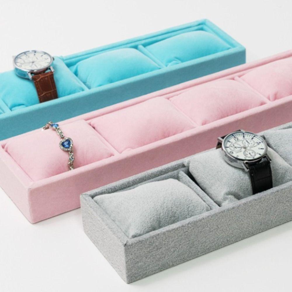 4 Slots Velvet Jewelry Organizer with Soft Pillow Watches Display Holder Bracelet Bangle Watches