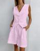 Embrace effortless style and comfort with this chic sleeveless vest and shorts set, perfect for summer outings. Crafted from a blend of cotton and linen, this two-piece ensemble offers a soft, breathable feel for all-day wear. Its solid pattern adds a touch of sophistication, making it a versatile addition to your casual wardrobe. Whether you're strolling along the beach or enjoying a sunny day in the city, this set will keep you looking fashionable and cool.