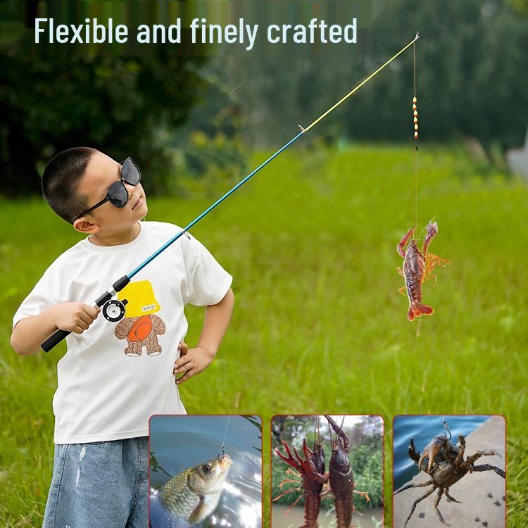 Kids' Retractable Mini Fishing Rod with Reel – Glass Fiber Ice Rod for Crabs & Lobsters